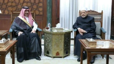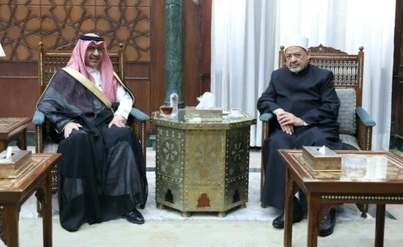 أكمل القراءة »استقبل الإمام الأكبر الدكتور أحمد الطيب، شيخ الأزهر الشريف، اليوم الثلاثاء بمشيخة الأزهر، صالح بن عيد الحصيني، سفير المملكة العربية السعودية لدى القاهرة، لبحث سبل تعزيز التعاون المشترك بين الجانبين في المجالات الدينية والعلمية. وخلال اللقاء، رحّب شيخ الأزهر بالسفير السعودي، مؤكدًا عمق العلاقات التاريخية التي تجمع بين الأزهر الشريف والمملكة العربية السعودية، وحرص المؤسسة الدينية العريقة على تعزيز التعاون مع نظيراتها في المملكة، بما يسهم في مواجهة التحديات التي تواجه العالم الإسلامي. وجدد الإمام…