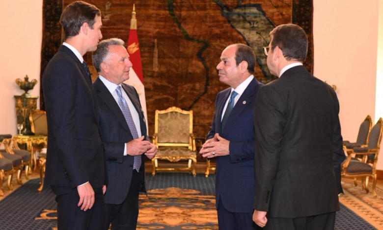 استقبل السيد الرئيس عبد الفتاح السيسي اليوم في قصر الاتحادية المبعوث الخاص الأمريكي للشرق الأوسط ستيفن ويتكوف، وجاريد كوشنر كبير مستشاري رئيس الولايات المتحدة الأمريكية، وذلك في إطار مشاركتهما في مفاوضات وقف إطلاق النار في قطاع غزة.